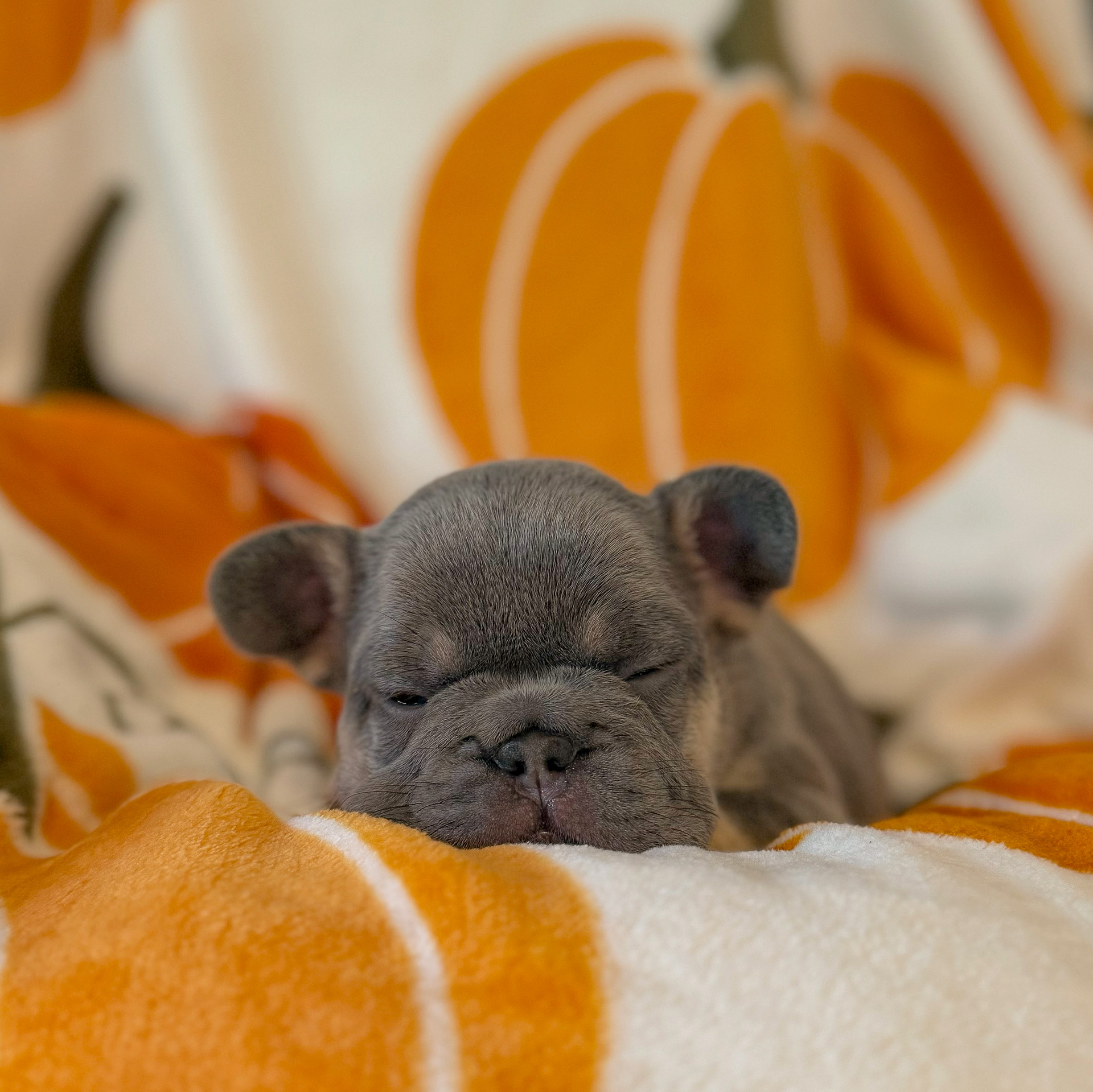 Chunky monkey with a huge blocky head and the happiest wiggle butt. This boy was 2 lbs at 3 weeks—built like a little tank!